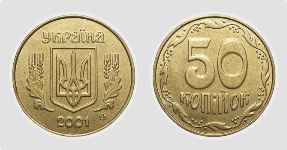 За близько 1 500 грн можна продати 50 копійок 2001 року. Така ціна обумовлена малим тиражем, яким було випущено цю монету. Він становив лише 5 000 одиниць.