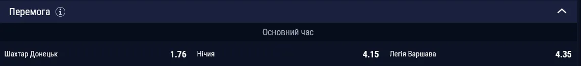 У рамках 2 туру Ліги конференцій український "Шахтар" зіграє проти польської "Легії". На думку букмекерів, явним фаворитом зустрічі є саме українська команда – на її перемогу діє коефіцієнт 1.76, тоді як на поляків – 4.35.